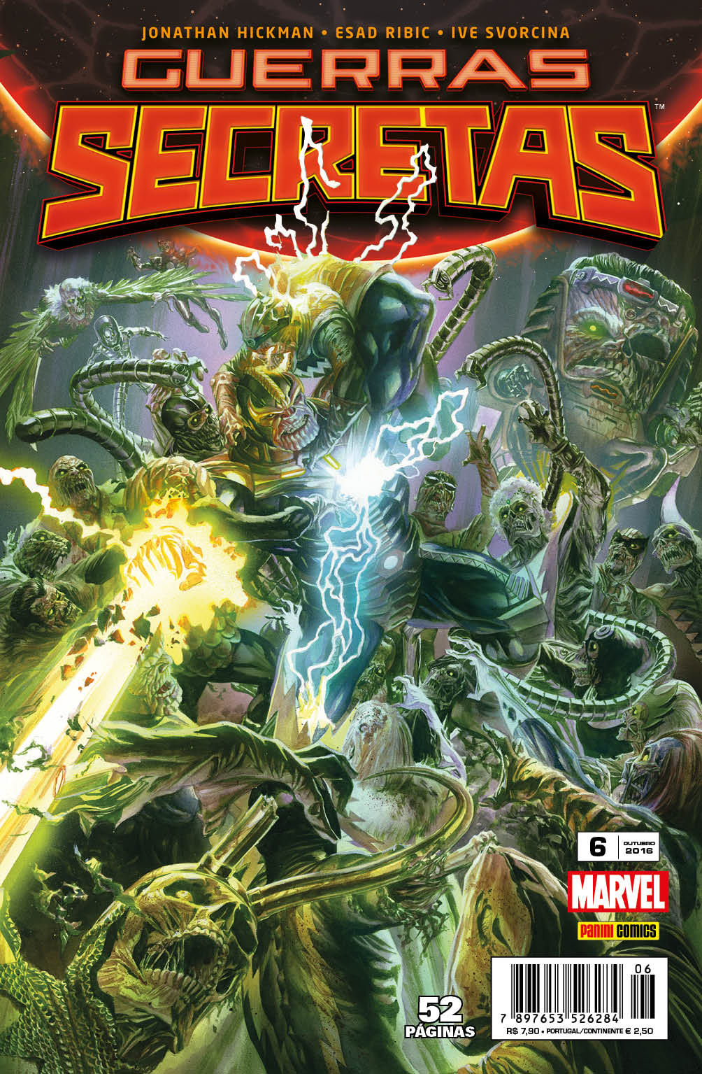 Ao longo da edição, que se passa três semanas depois do Capítulo #5, entendemos o destino da Cabala, a superequipe de Thanos, enquanto os heróis dos universos originais remanescentes continuam livres e totalmente dedicados a encontrar um meio de subjugar Victor Von Doom. É interessante ressaltar que este ponto da megasaga coincide com o desfecho de vários tie-ins, muitos já resenhados aqui no Blog, em que há grupos ou superseres tramando a deposição do Deus Destino. Uma breve declaração do próprio Doom na primeira página contextualiza essa situação. Essa desconexão com a maior parte das minisséries paralelas é consequência do formato editorial que a Panini optou em publicá-las. Como saíram em encadernados, as histórias já estavam completas e perde-se, desse modo, a simultaneidade que essas minisséries tinham com a série principal lá nos EUA.