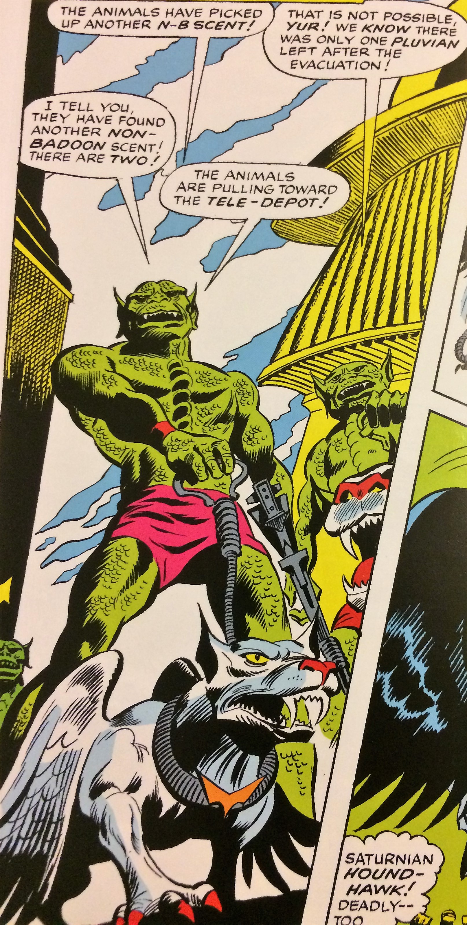 Adversários iniciais: a Irmandade dos Badoon (Brotherhood of the Badoon), espécie alienígena reptiliana que, no século XXXI, empreendeu um vasto ataque ao Sistema Solar e a Alfa Centauro, dominando a Terra e suas colônias em Plutão, Netuno, Marte e também o planeta natal dos Centaurianos. No momento em que saiu esta revista, os Badoon tinham recentemente aparecido pela primeira vez na revista Silver Surfer #2 (criados por Stan Lee e John Buscema), em outubro de 1968, apenas 3 meses antes! Eles são, desta forma, o elo com o restante do Universo Marvel.