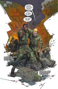 Então… o final do arco se aproxima e este penúltimo capítulo começa bem, com bons diálogos e Carol Danvers se posicionando com mais convicção e desenvoltura, a ponto de comandar um breve encontro com outros líderes, incluindo seu parceiro de Os Supremos, o Pantera Negra. Porém, quando a ação acontece, novamente percebemos os limites das autoras que, reassalta-se, não são especialistas em quadrinhos, e sim em roteiros para TV, Michele Fazekas e Tara Butters: o andamento torna-se truncado, situações meio sem explicações surgem e terminam, e lá no final um dos adversários alienígenas muda de ideia tão subitamente que parece um conto infantil – com todo o respeito às crianças, claro.