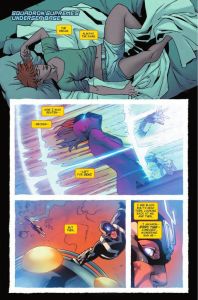 Novo arco, com a primeira de uma história em três partes focada na Doutora Espectro. O roteirista da série, James Robinson, recupera um pouquinho dos acontecimentos que apresentaram esta personagem, poucos anos atrás, na fase dos Novos Vingadores de Jonathan Hickman (que está sendo republicada em encadernados pela Panini) e corretamente vai um pouco além, entregando a origem até então secreta da heroína. Ela é a versão alternativa mais recente do Doutor Espectro da década de 1970 que, por sua vez, era um análogo do Lanterna Verde da DC Comics (leia de novo este trecho que acho que dá para entender…). Porém, ao invés de um anel, os Doutores Espectros da Marvel possuem um Prisma do Poder, de origem mística, e não há relatos de que integram uma “tropa”. A personagem tem um pesadelo com Raio Negro, o poderoso líder dos Inumanos que a derrotou em combate no passado recente, quando ela ainda integrava uma superequipe chamada A Grande Sociedade – uma homenagem às duas maiores equipes da DC, a Liga e a Sociedade da Justiça. As imagens de Leonard Kirk são marcantes, embora sem muitos detalhes, com as tradicionais cores vibrantes de Frank Martin. Em seguida, a nova Doutora Espectro parte em uma missão submarina designada pelo seu colega Falcão Noturno. Lá nas profundezas do oceano, “boas” surpresas a aguardam. Temos também pequenos momentos com o próprio Falcão Noturno, que é surpreendido por um personagem que, de fato, precisava aparecer na série. O autor continua recheando as histórias deste Esquadrão com referências a eventos, locais e situações do vasto Universo Marvel. A atual empresa que o Falcão dirige, por exemplo, é a Oracle Inc., cujo proprietário original era o Namor, na intrigante fase de John Byrne dos anos 1990. Tundra ainda não está com a equipe, mas parece inevitável entrar, para ocupar a vaga da fugitiva Princesa do Poder.