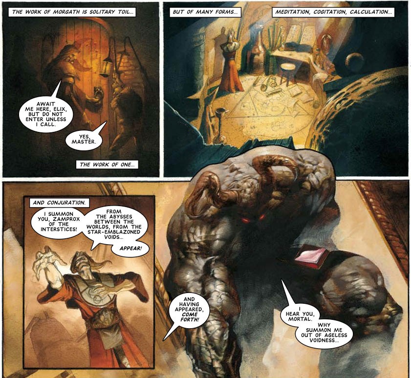 História curta e extremamente impactante, com um desenvolvimento perfeito entre texto e arte, onde acompanhamos o mago Pel Morgath em busca de (mais) poder.