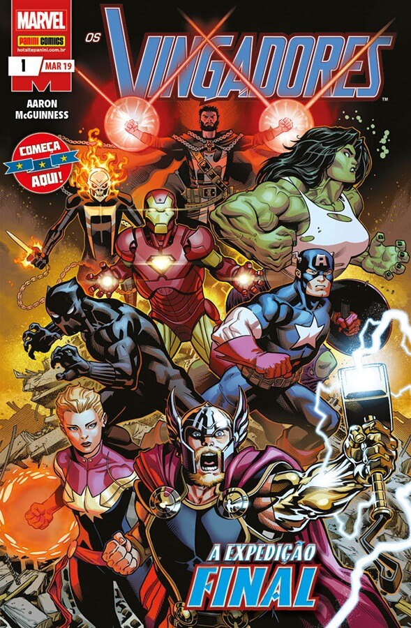 Os Vingadores #1 traz material de duas revistas da Marvel Comics: Free Comic Book Day 2018 e Avengers #1 (julho/2018), ambas escritas por Jason Aaron, o celebrado roteirista de Thor, Dr. Estranho e muitos outros títulos dos últimos dez anos da editora.